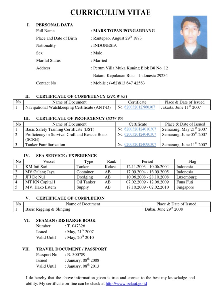 Contoh Cv Curriculum Vitae Yang Baik Dan Benar