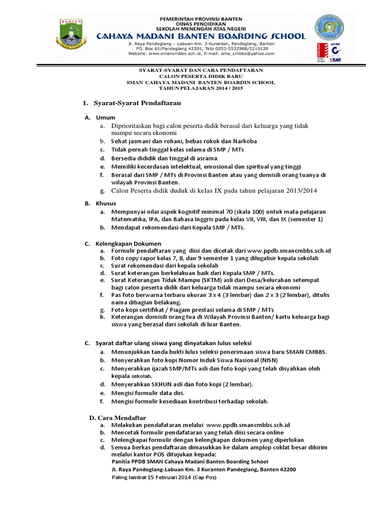 Syarat Pendaftaran Calon Siswa Baru Sma Taruna Nusantara Tp