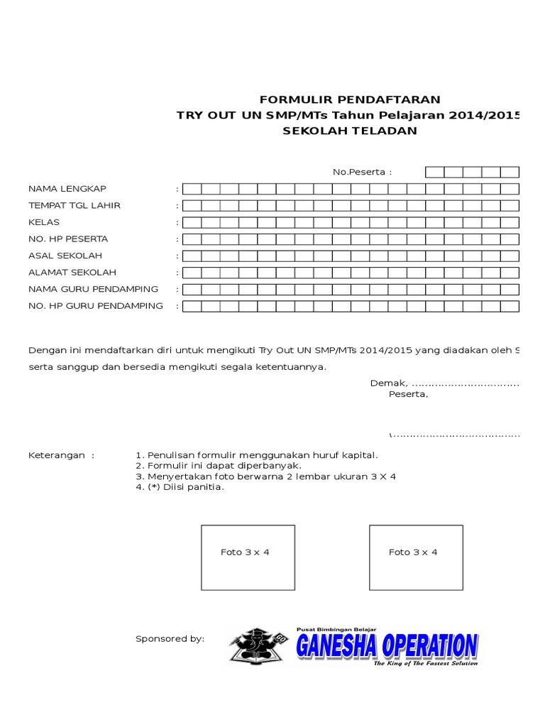 Contoh Formulir Pendaftaran Ganesha Operation Detil Gambar