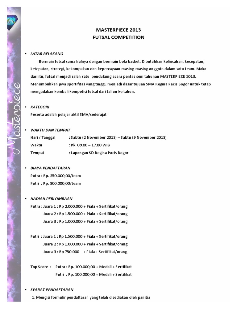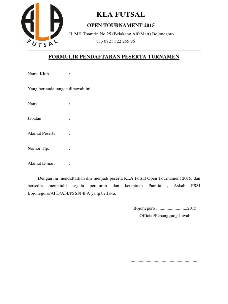 Contoh Formulir Pendaftaran Futsal Cup Detil Gambar Online