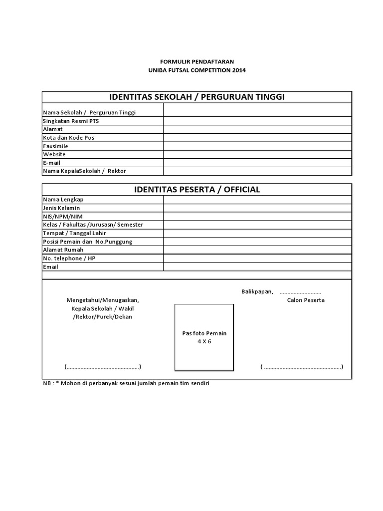 Contoh Formulir Pendaftaran Futsal Simak Gambar Berikut