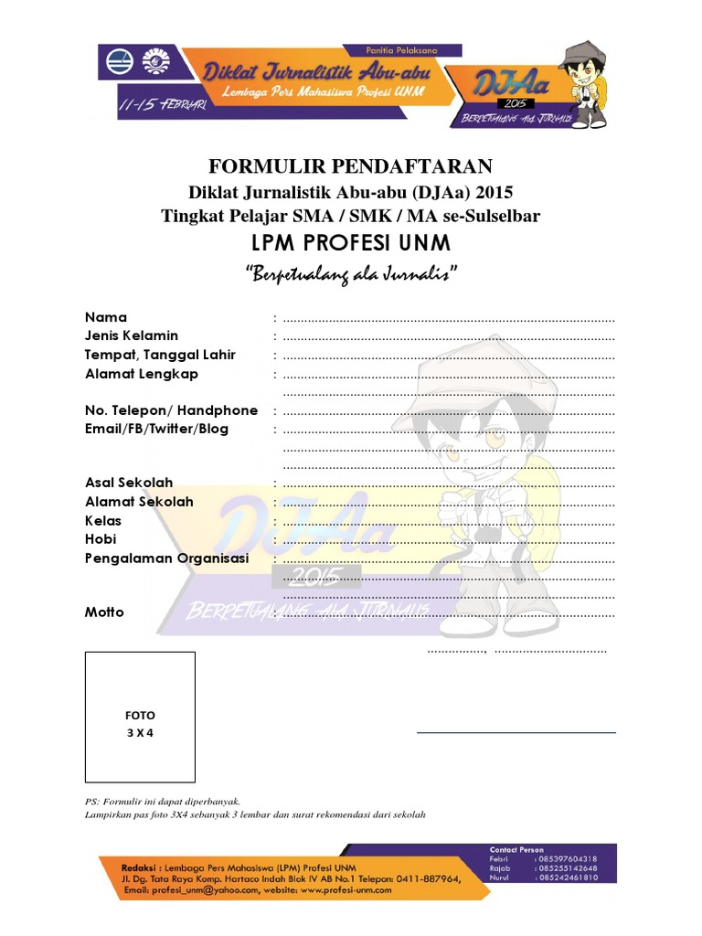 Formulir Pendaftaran Anggota Muda Kalam Upi Org