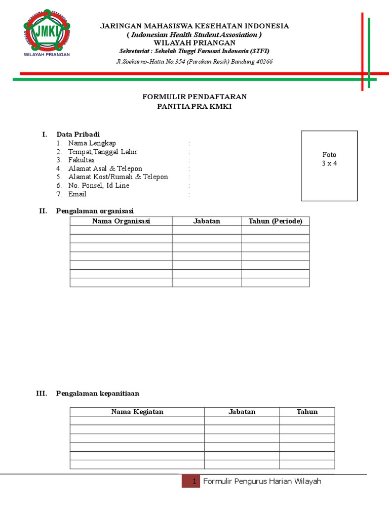 Contoh Formulir Pendaftaran Anggota Baru Organisasi Info