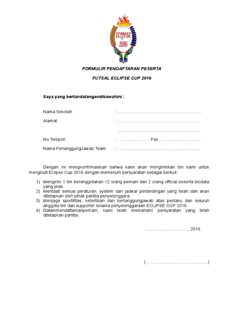 Formulir Futsal Doc Formulir Pendaftaran Peserta Lomba