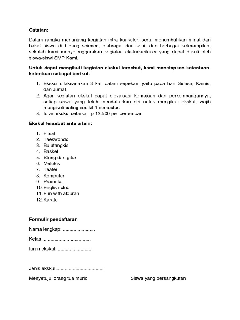 Contoh Formulir Ekstrakurikuler Web Contoh S