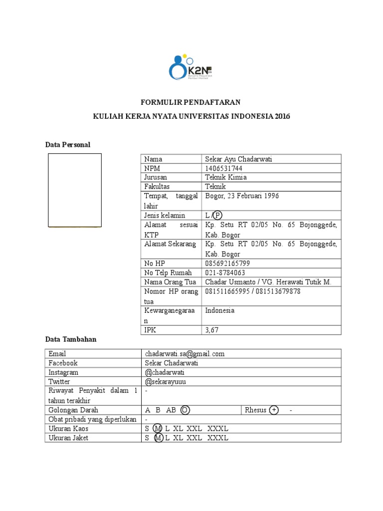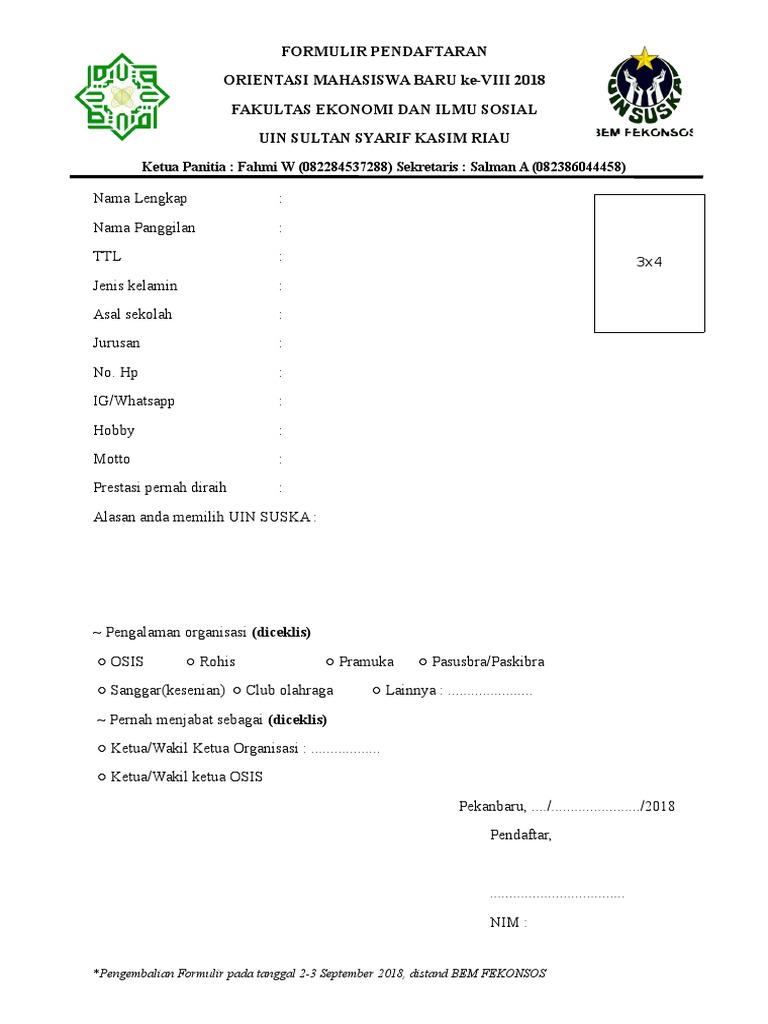 Contoh Formulir Pendaftaran Organisasi Feed News Indonesia