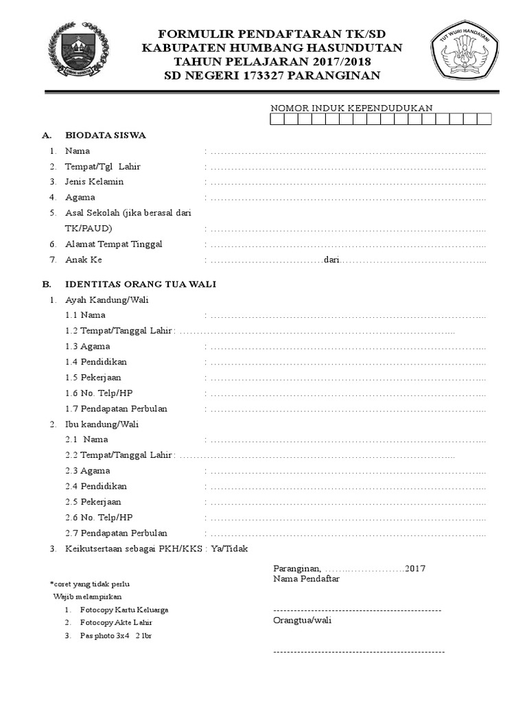 Contoh Formulir Pendaftaran Sekolah Lengkap Tk Sd Smp Sma