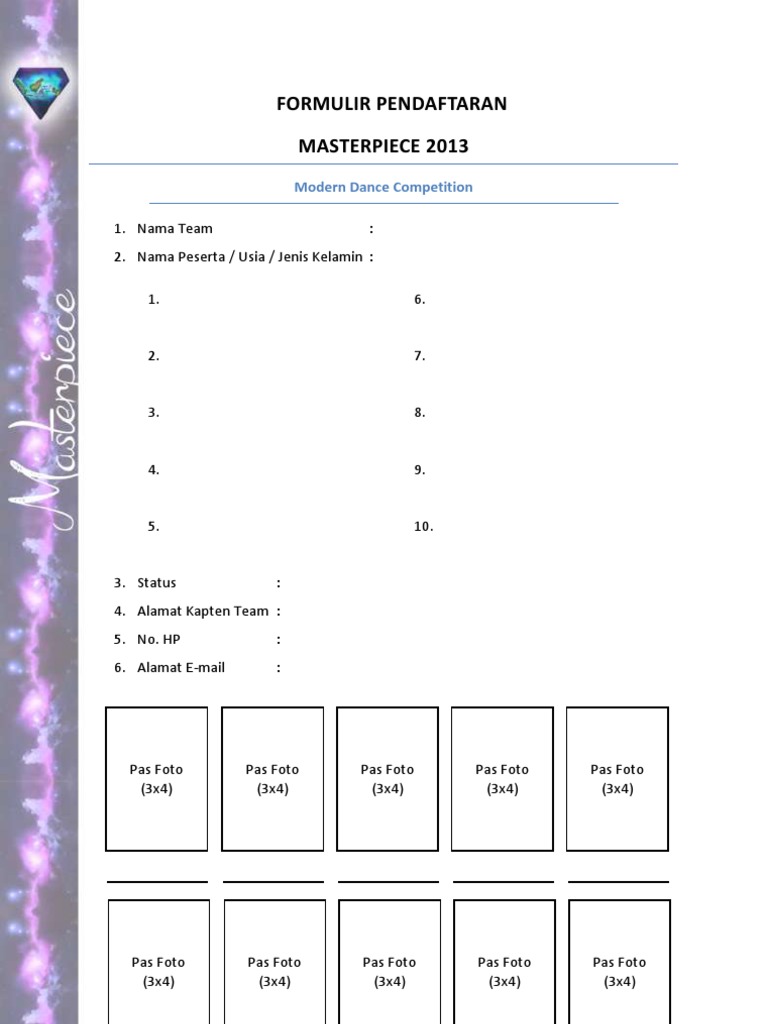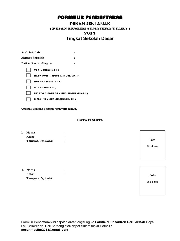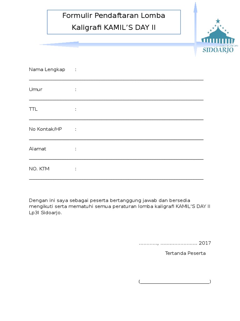 Contoh formulir pendaftaran lomba. Qiyadah fikriyah fil islam. Contoh formulir pendaftaran lomba festival. Keputusan dewan juri adalah hak paten.
