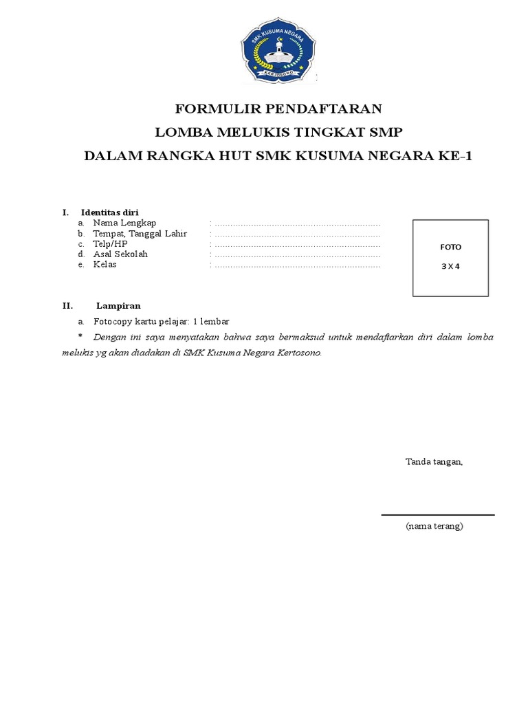 Contoh Format Formulir Pendaftaran Lomba Detil Gambar Online