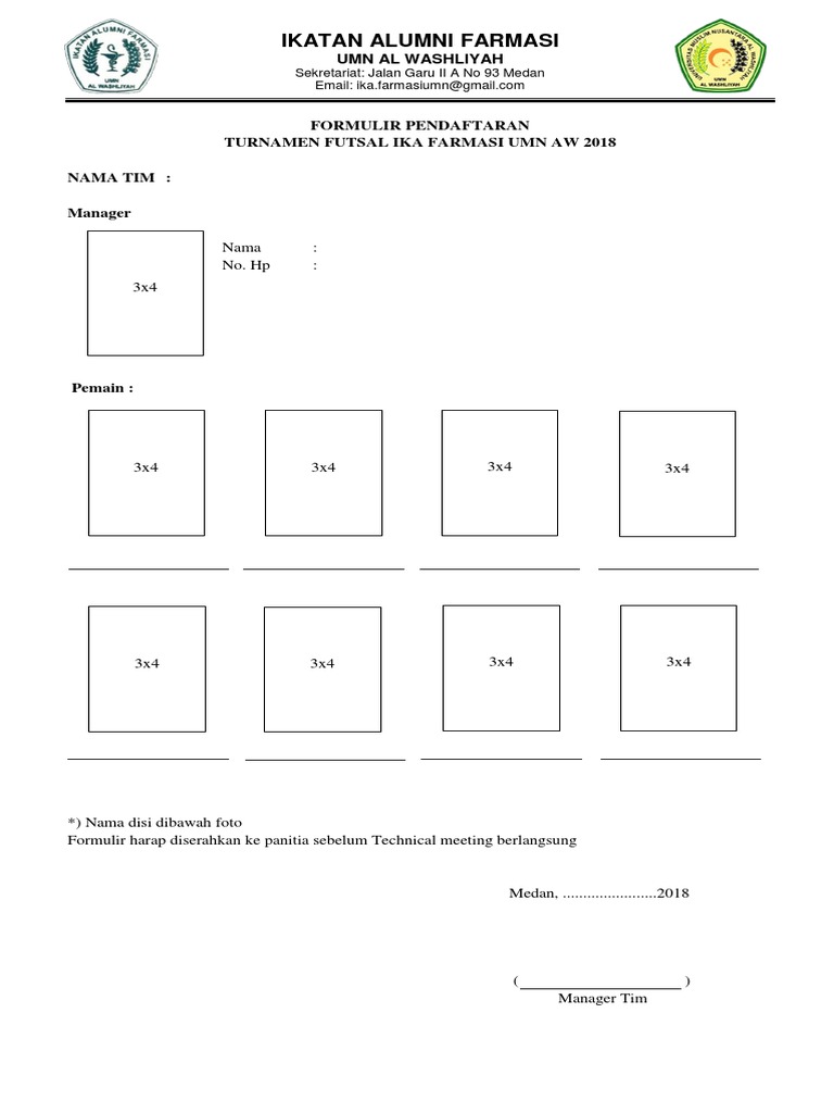 Form Pendaftaran Pemain Foto Doc Doc Document