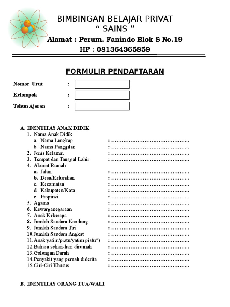Contoh Formulir Pendaftaran Bimbel Hrasmi