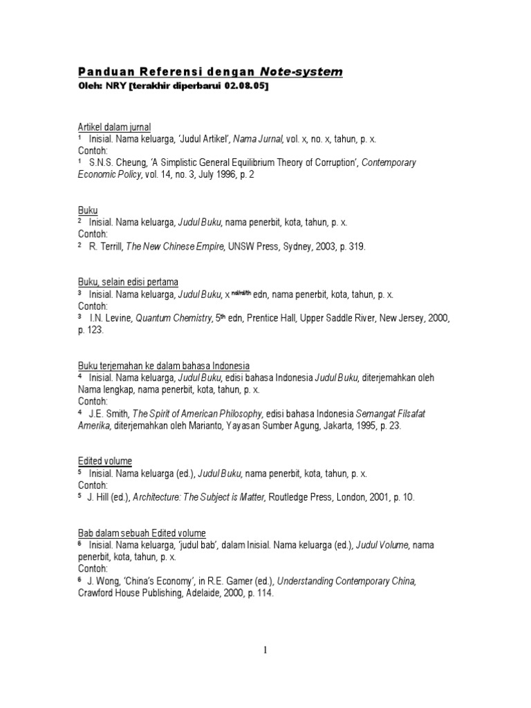 Panduan Menulis Catatan Kaki Dari Beberapa Jenis Referensi