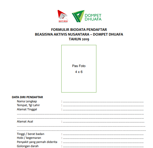 Contoh Form Biodata Diri Lengkap 2019 Secercah Ilmu