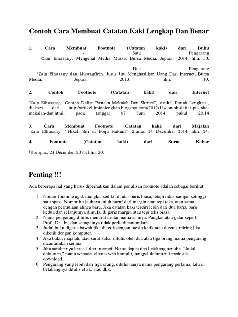 Contoh Catatan Kaki Footnote Yang Benar Cara Menulisnya