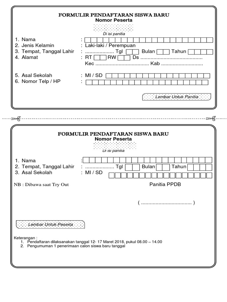 Salah satu instrumen yang biasa digunakan untuk penerimaan siswa baru adalah formulir pendaftaran. Format file dari formulir ppdb bagi sd ini dalam format word dengan ukuran f4. Download contoh formulir pendaftaran siswa baru ppdb terbaru untuk sdmi smpmts dan smasmkma setiap awal tahun pelajaran pasti seluruh sekolah dan madrasah melaksanakan kegiatan ppdb yaitu pnerimaan peserta didik baru atau penerimaan siswa baru psb.