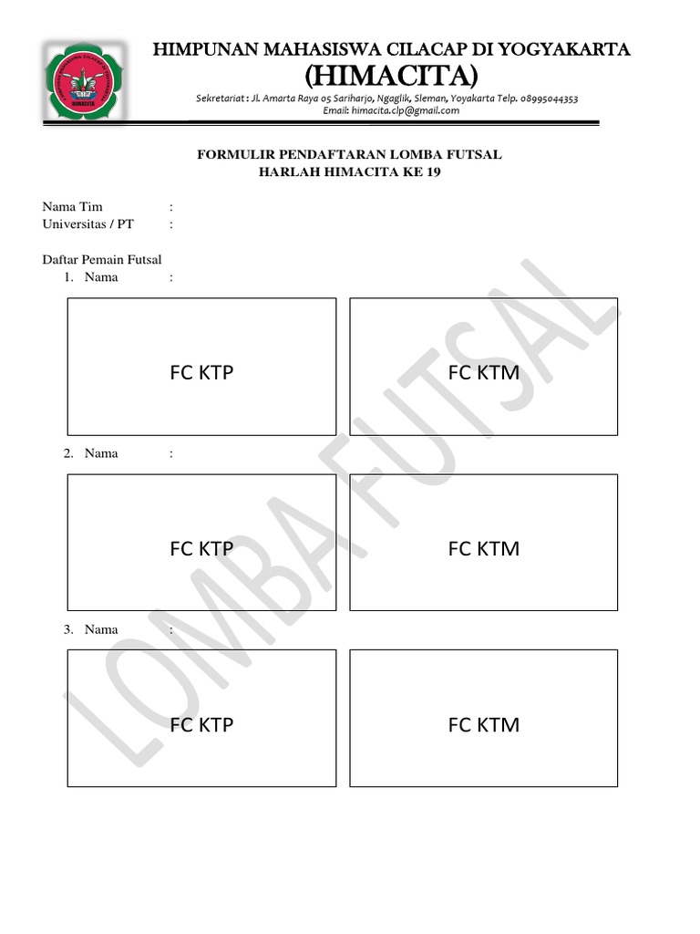Formulir Pendaftaran Futsal Imabasa Docx Formulir