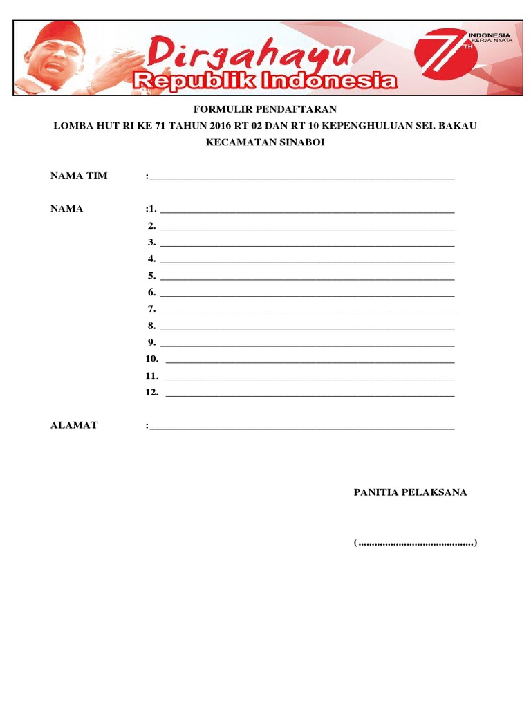 Kumpulan Contoh Format Pendaftaran Lomba 17 Agustus Hut Ri