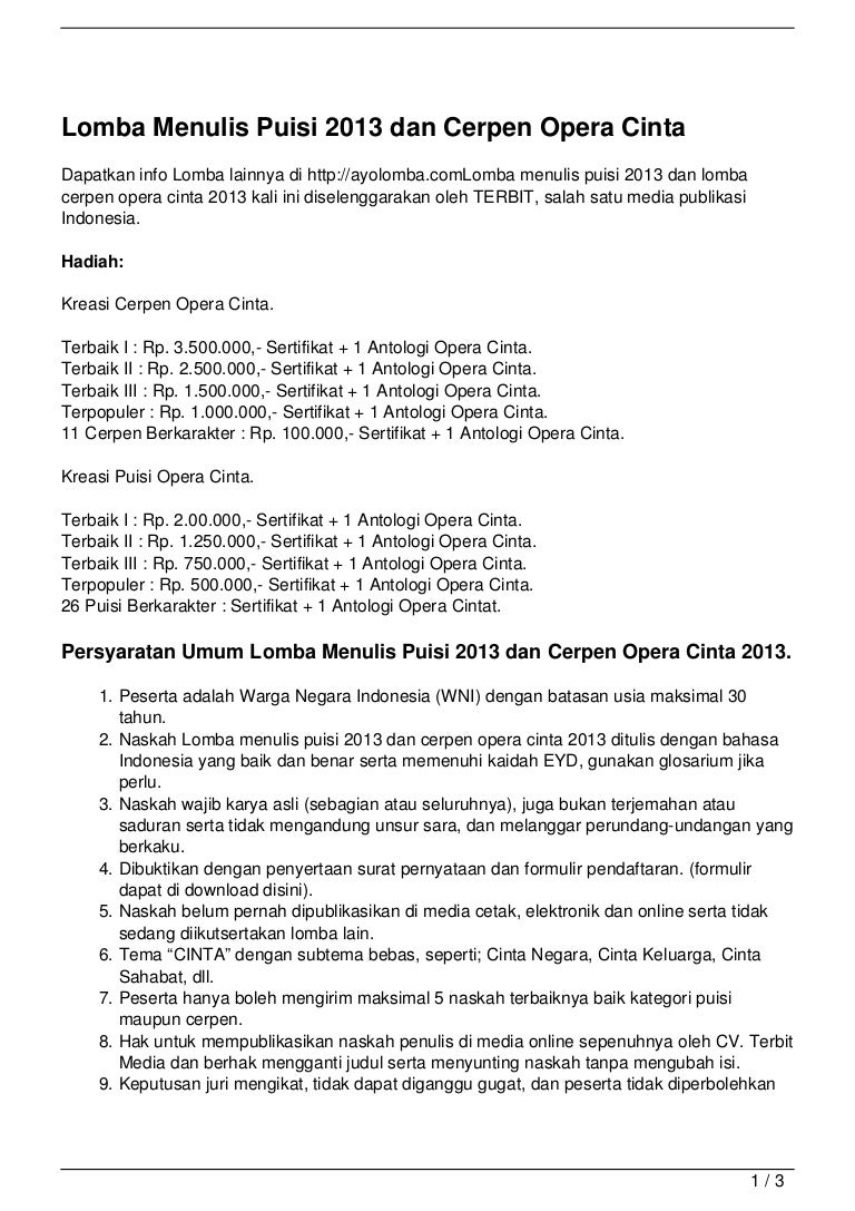 Lomba Menulis Puisi 2013 Dan Cerpen Opera Cinta