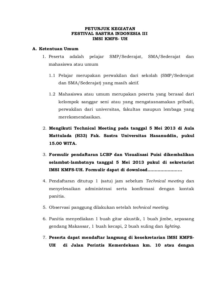 Petunjuk Pelaksanaan Dan Formulir Lomba Baca Puisi