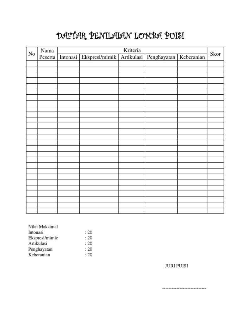 Format Penilaian Lomba Baca Puisi Download Pdf