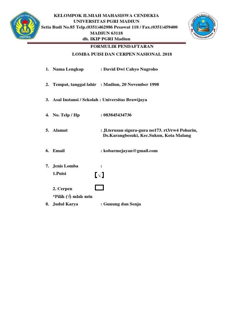 Formulir Pendaftaran Puisi Dan Cerpen 1