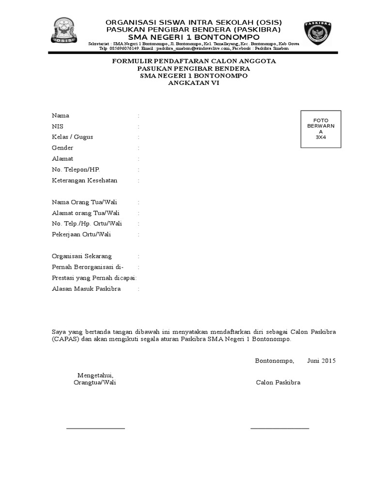 Hasil Gambar Untuk Contoh Formulir Pendaftaran Osis Di 2019