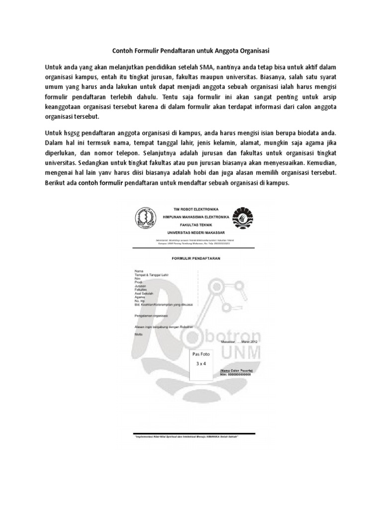 Contoh Formulir Pendaftaran Anggota Baru Organisasi Info